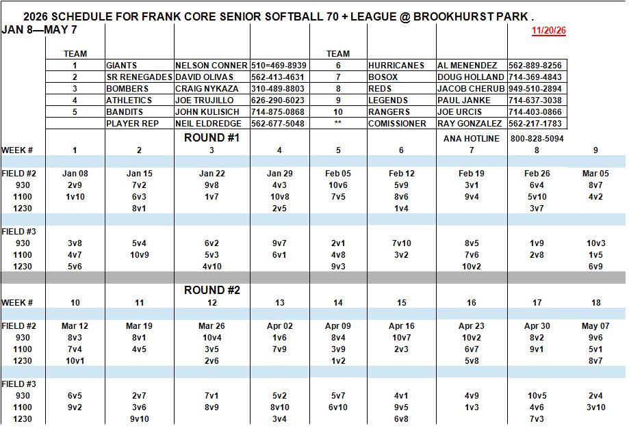 Southern California Senior Softball Info